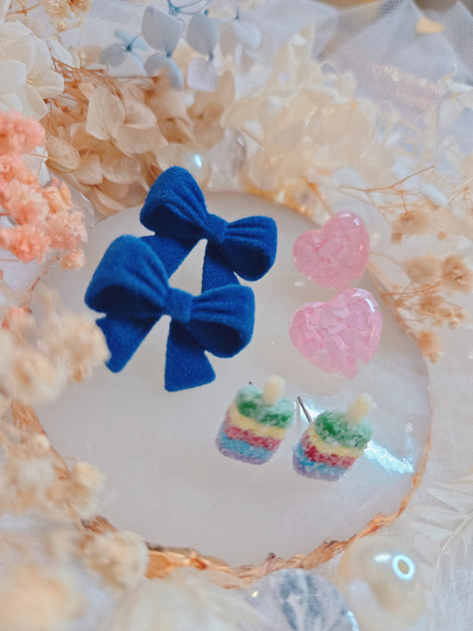 3 Set Ribbon Heart Ice Cream Stud Earring