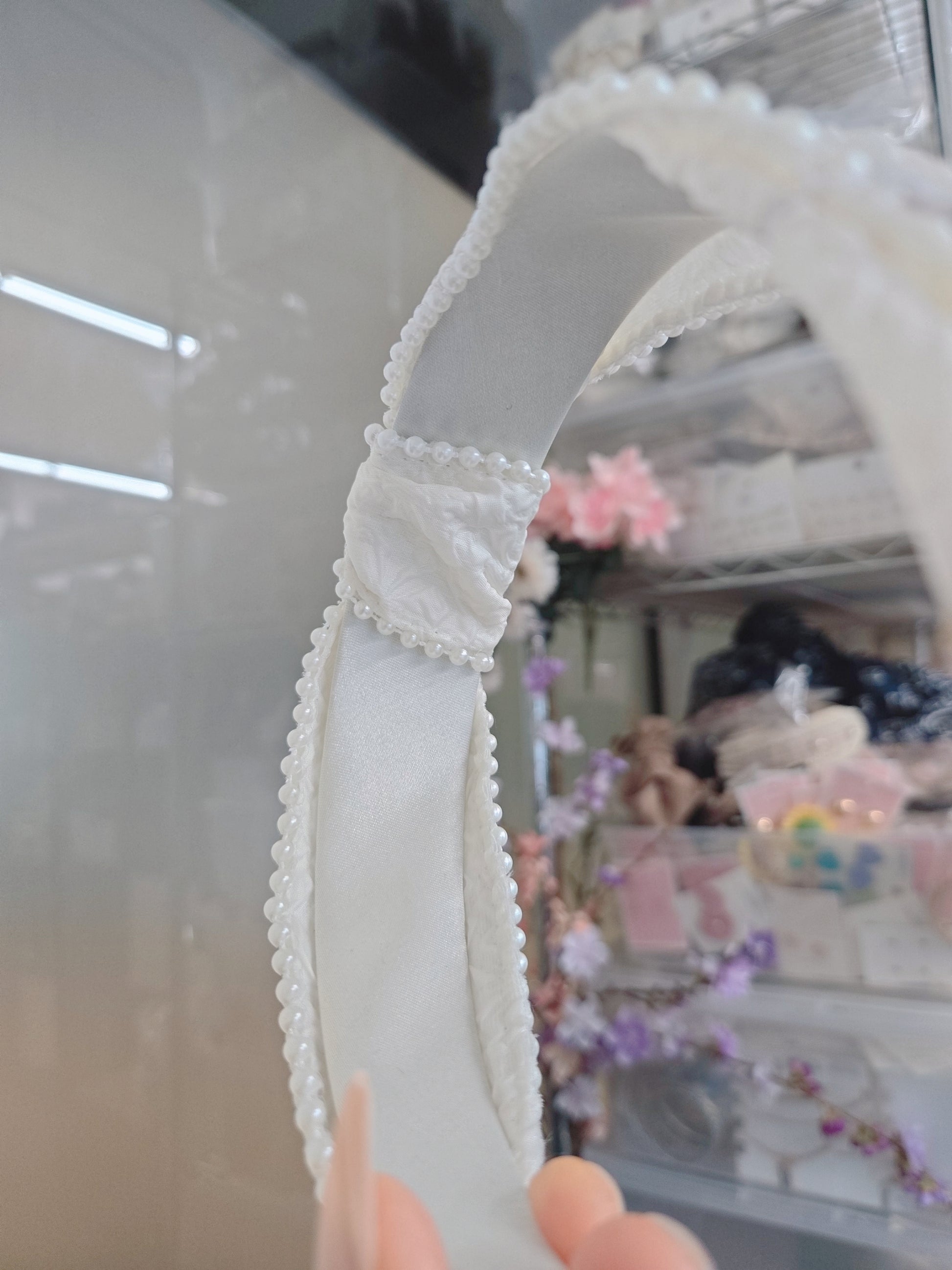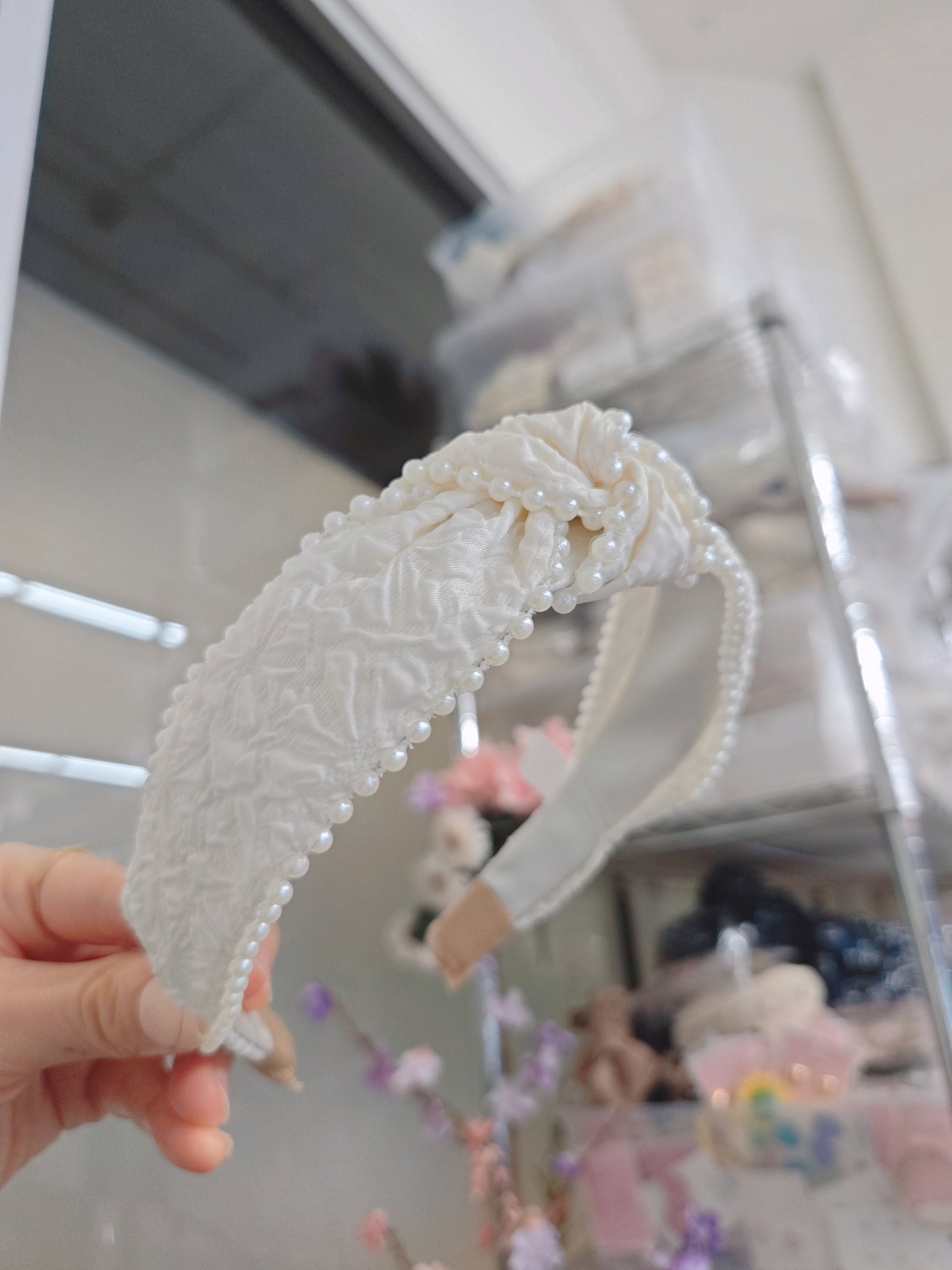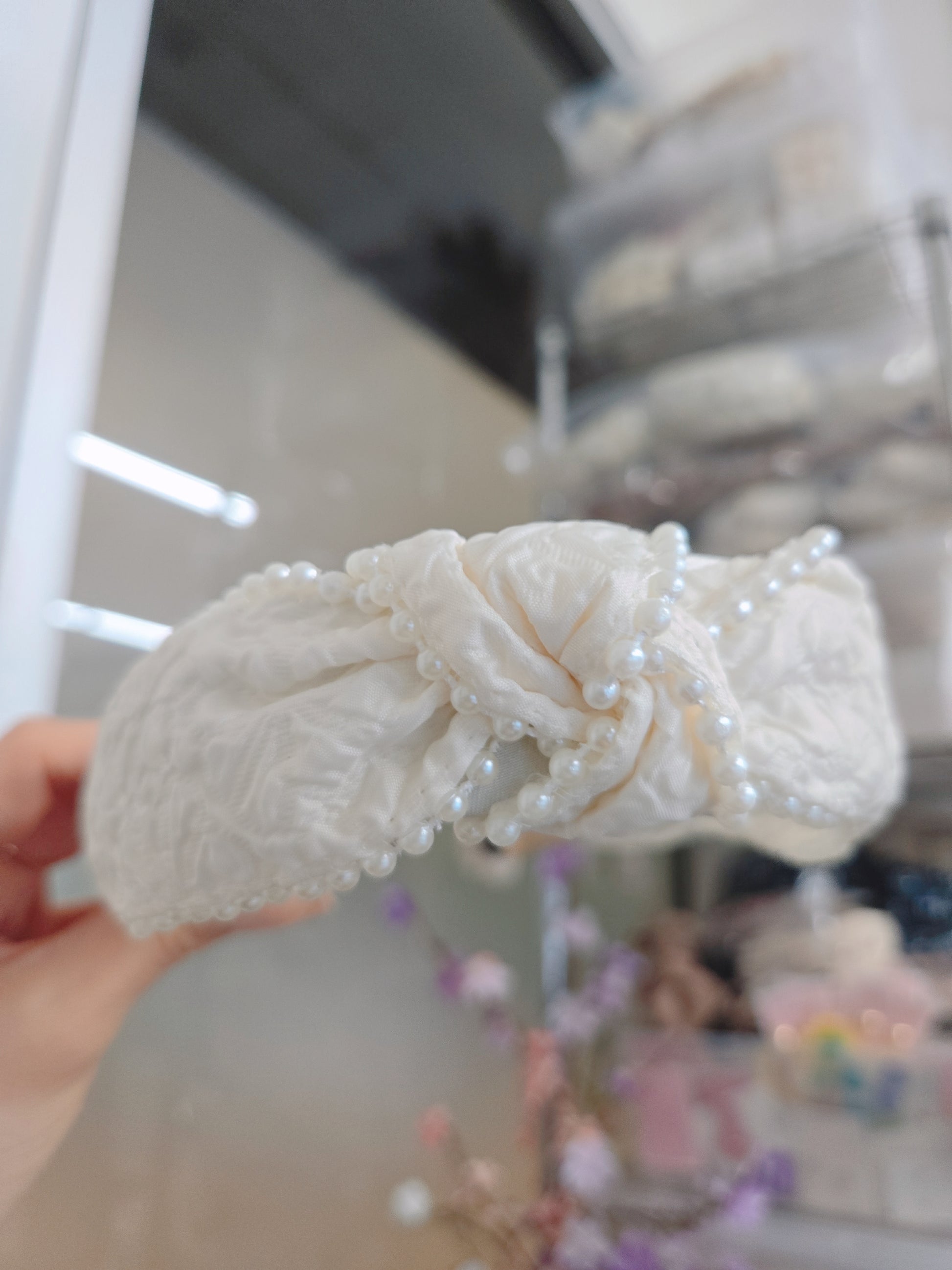 White Pearl Tied Lovely Hairband- Cute Style, Versatile for Any Occasion