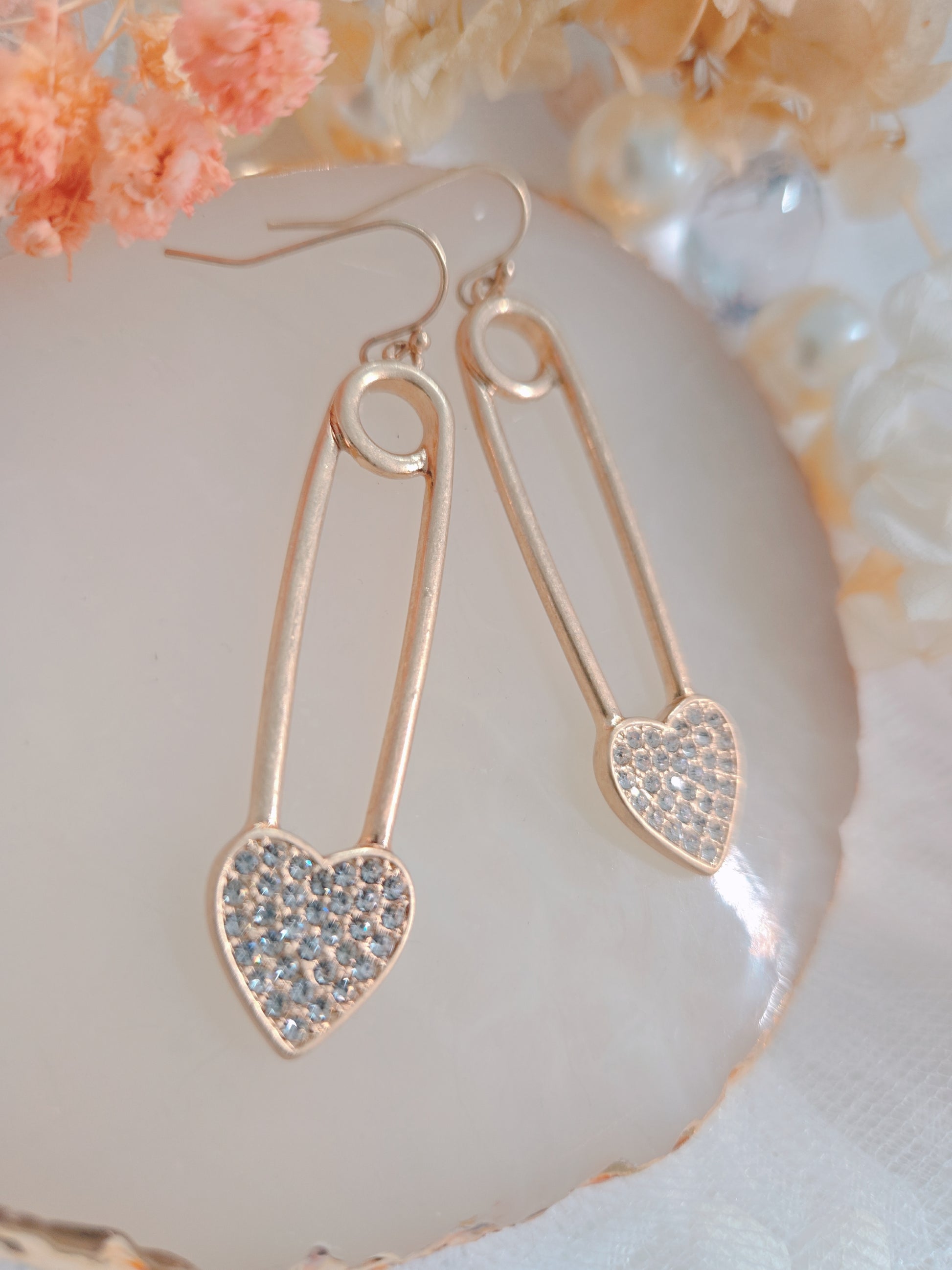 Heart Pin Stone Dangle Earring - Cute and Lovely Style