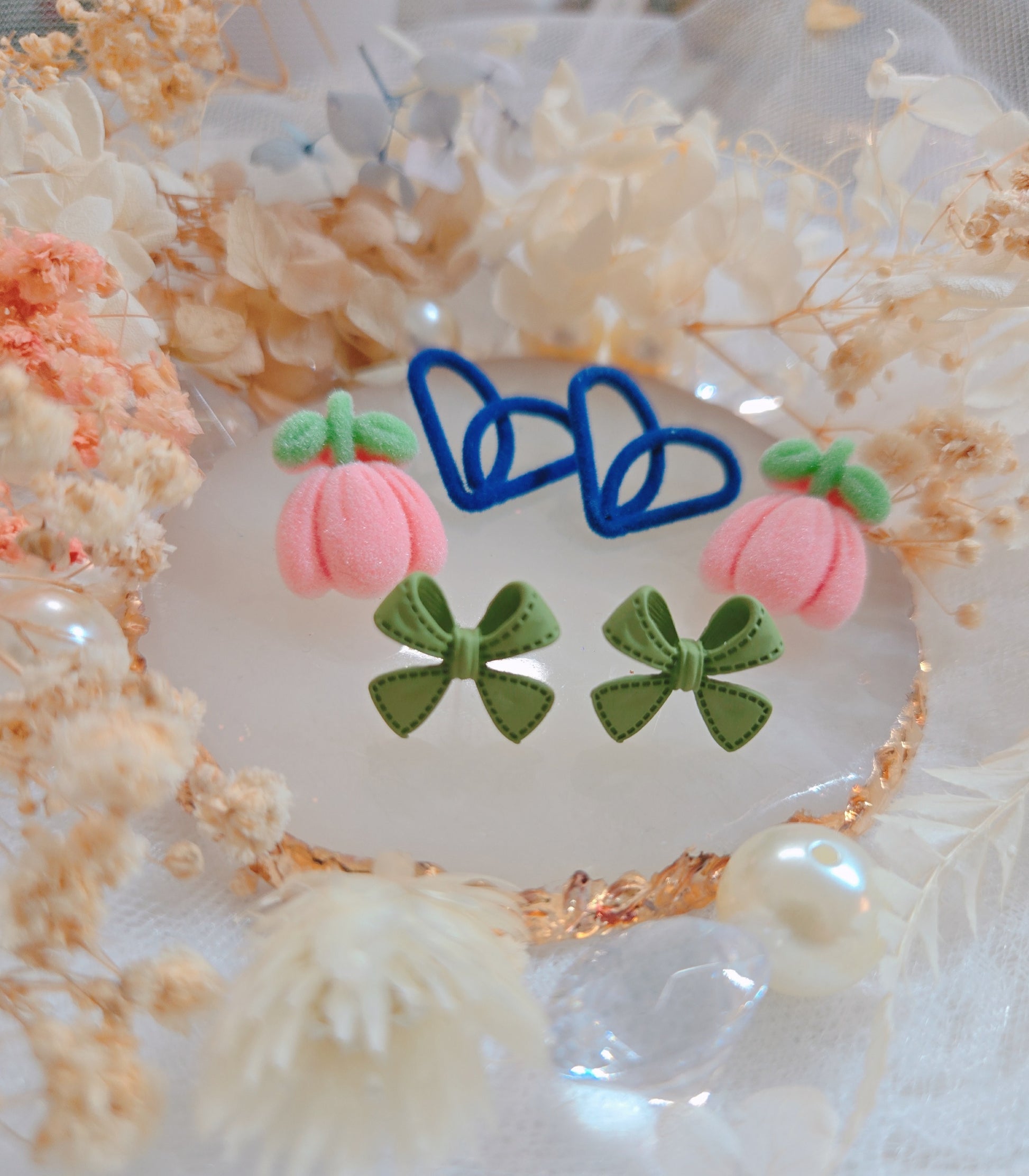 PINKme 3 Set Ribbon Heart Flower Stud Earring - Cute and Lovely Style - Fashionable and Versatile