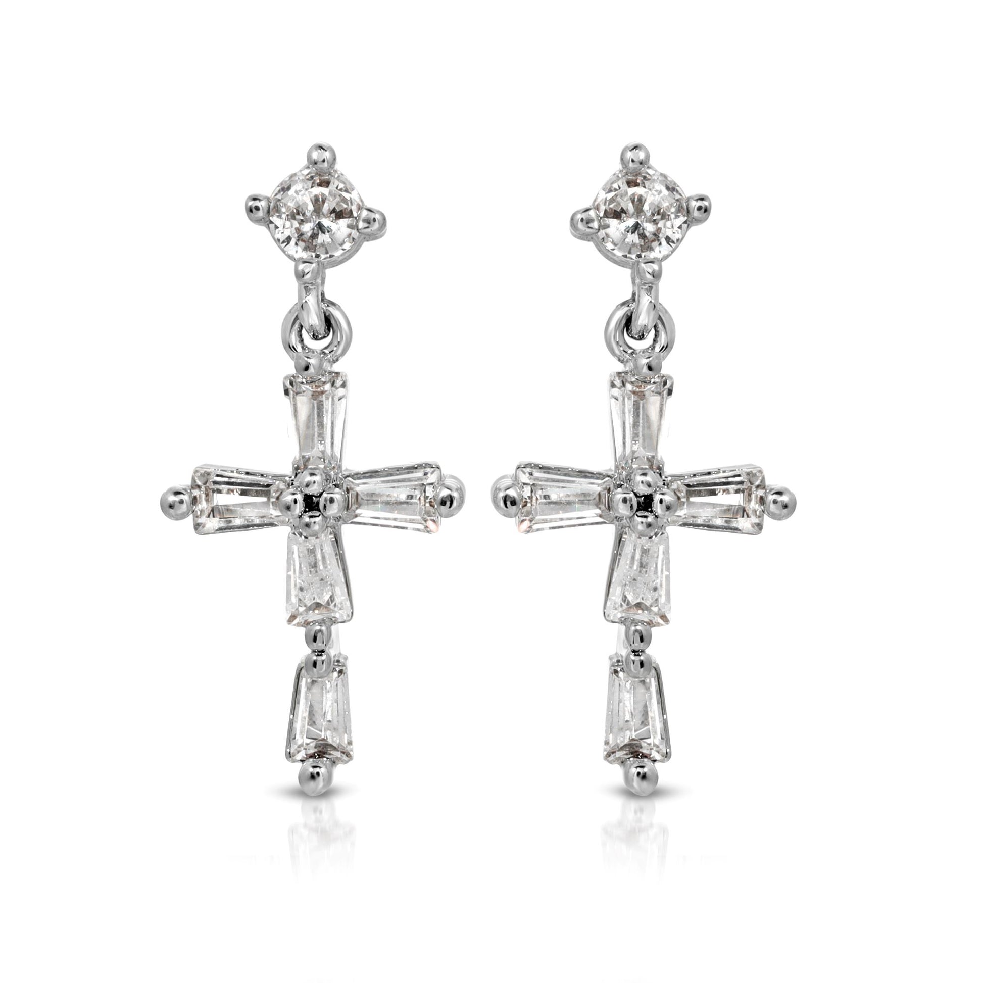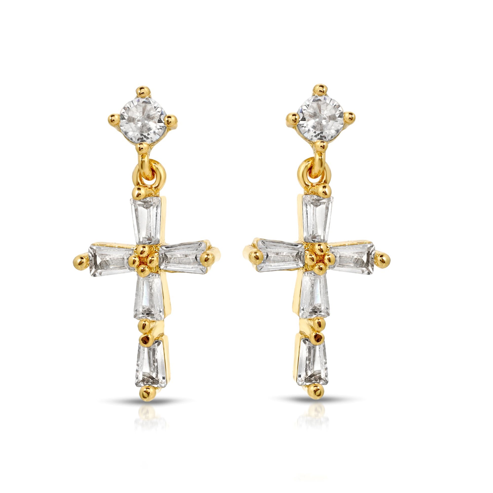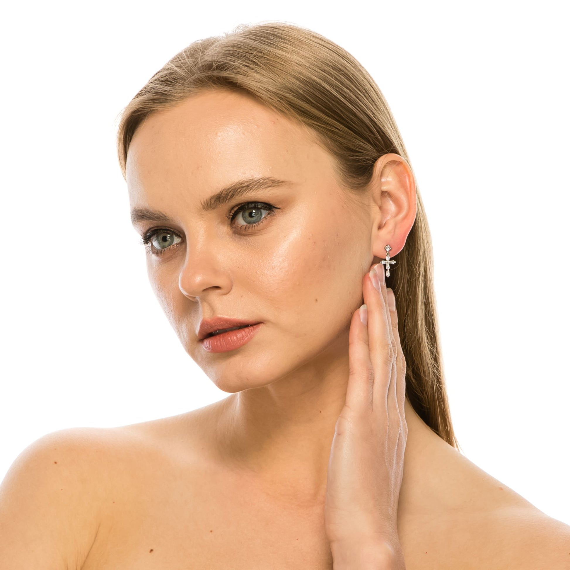 Dangle Earrings Jewelry - Sterling Silver Post Cubic Zirconia Stone Brass Metal Gold or Rhodium Color Plated