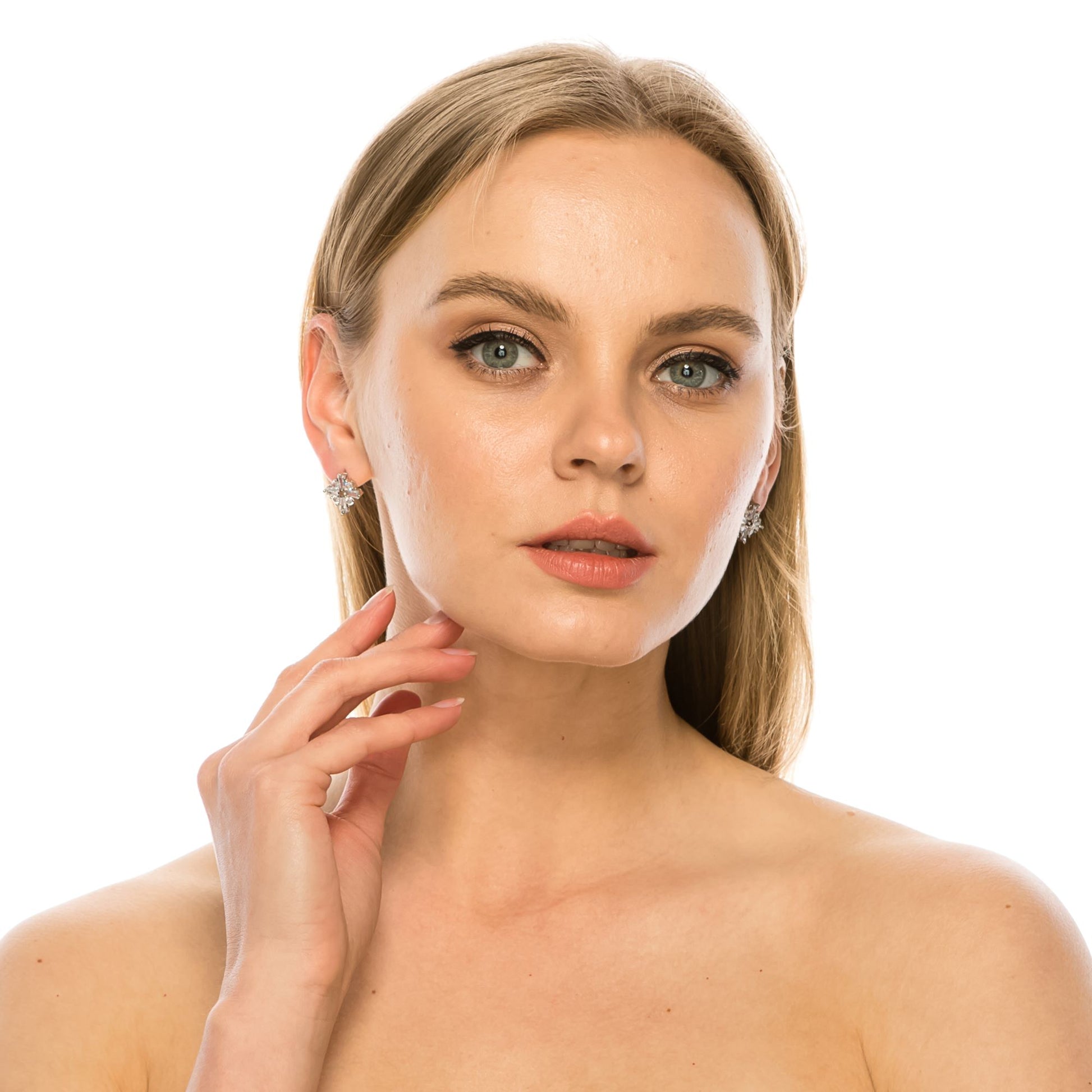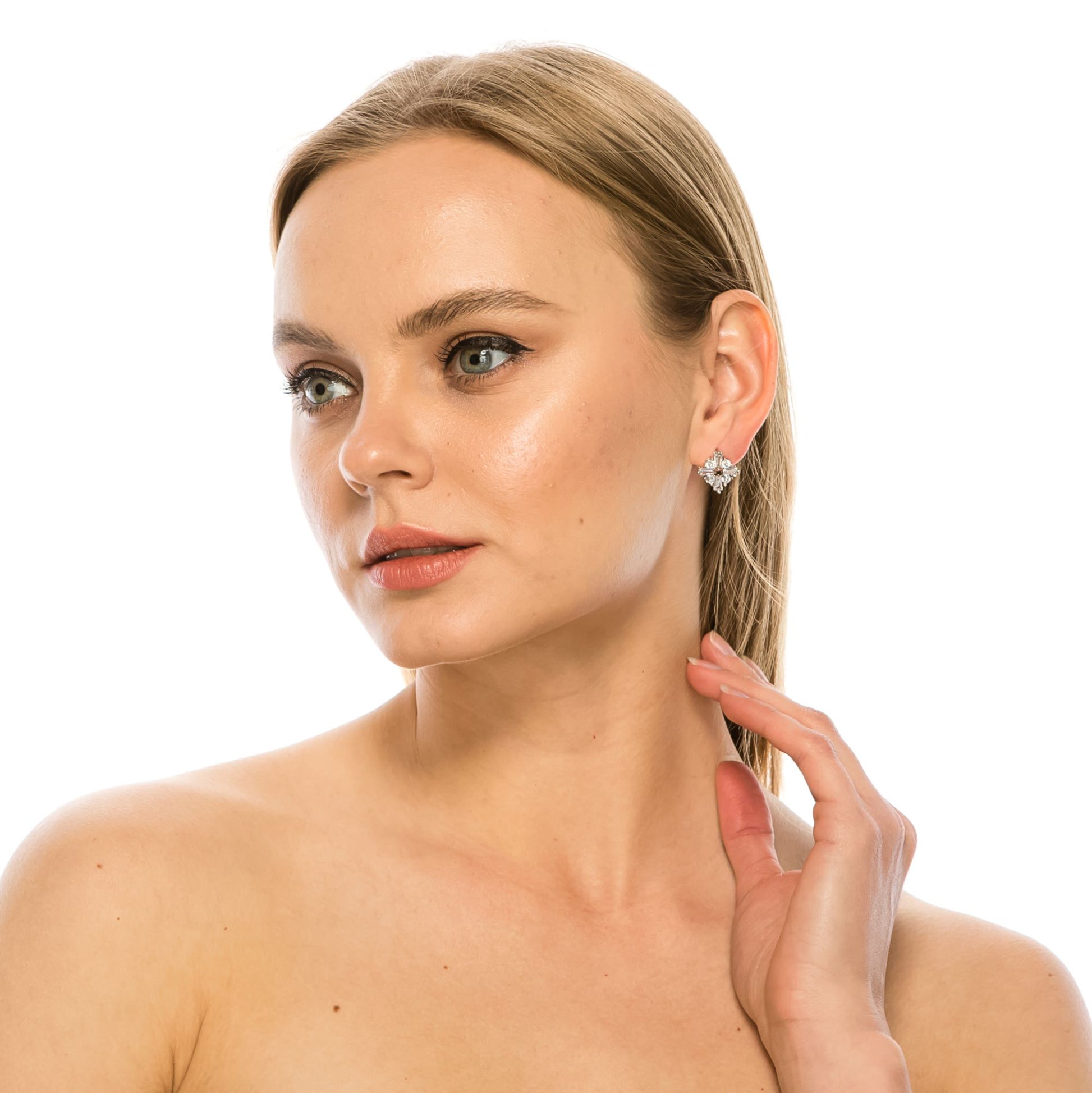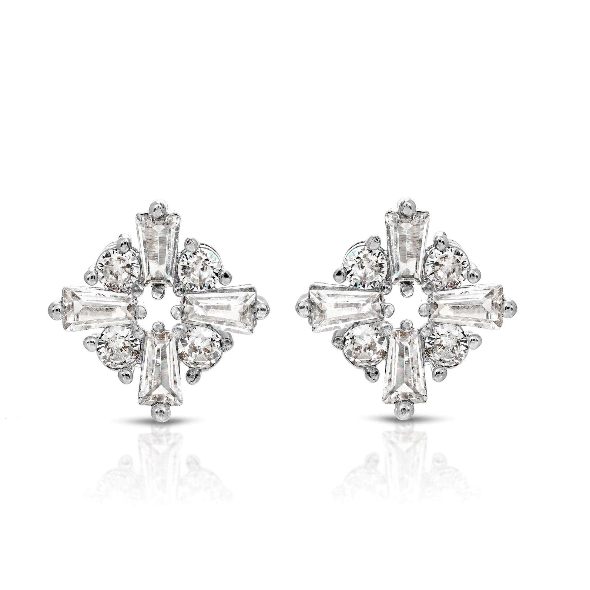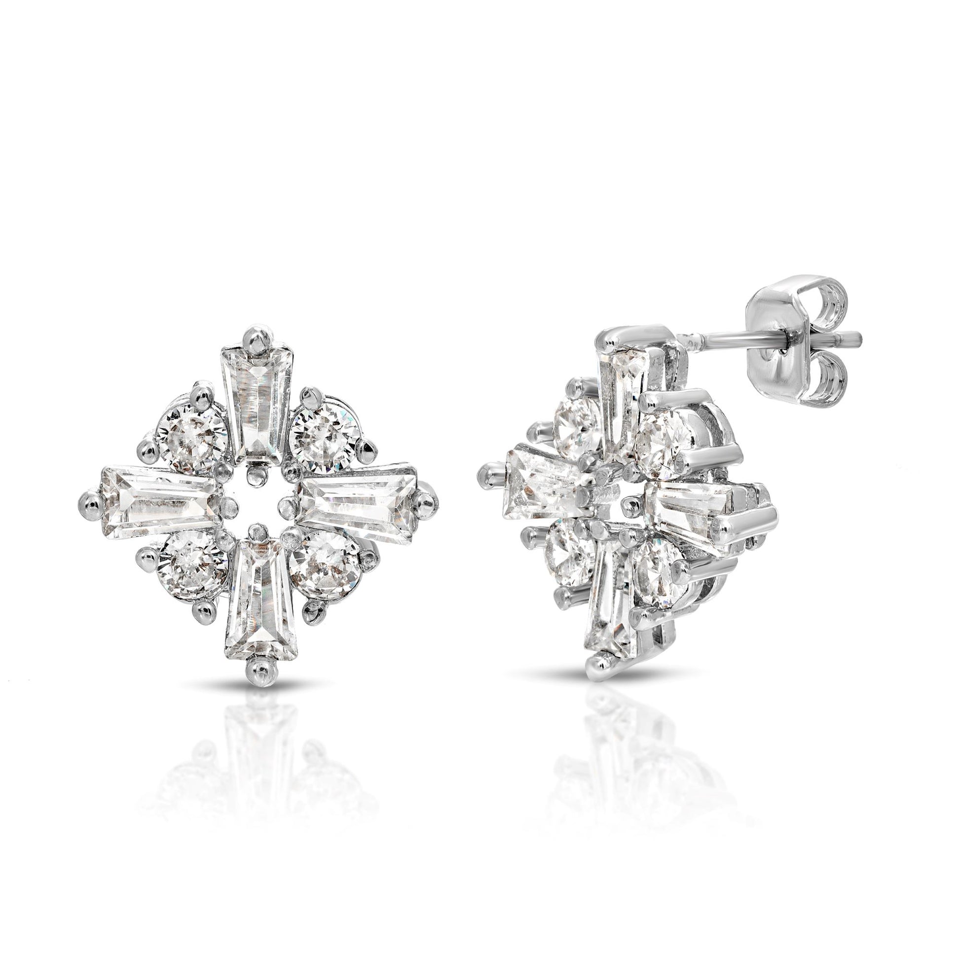 Studs Earrings Jewelry - Sterling Silver Post Cubic Zirconia Stone Brass Metal Gold or Rhodium Color Plated