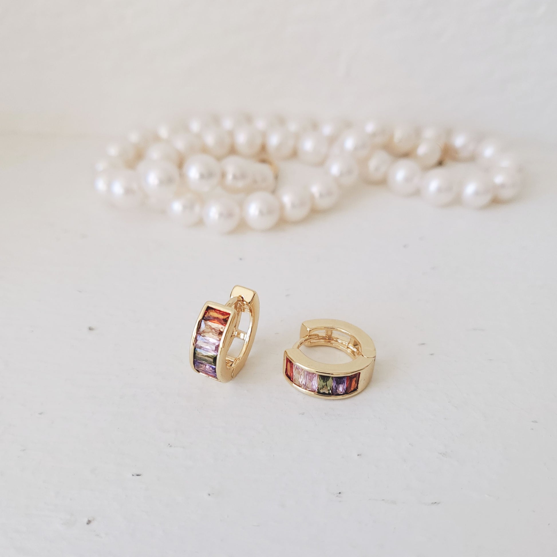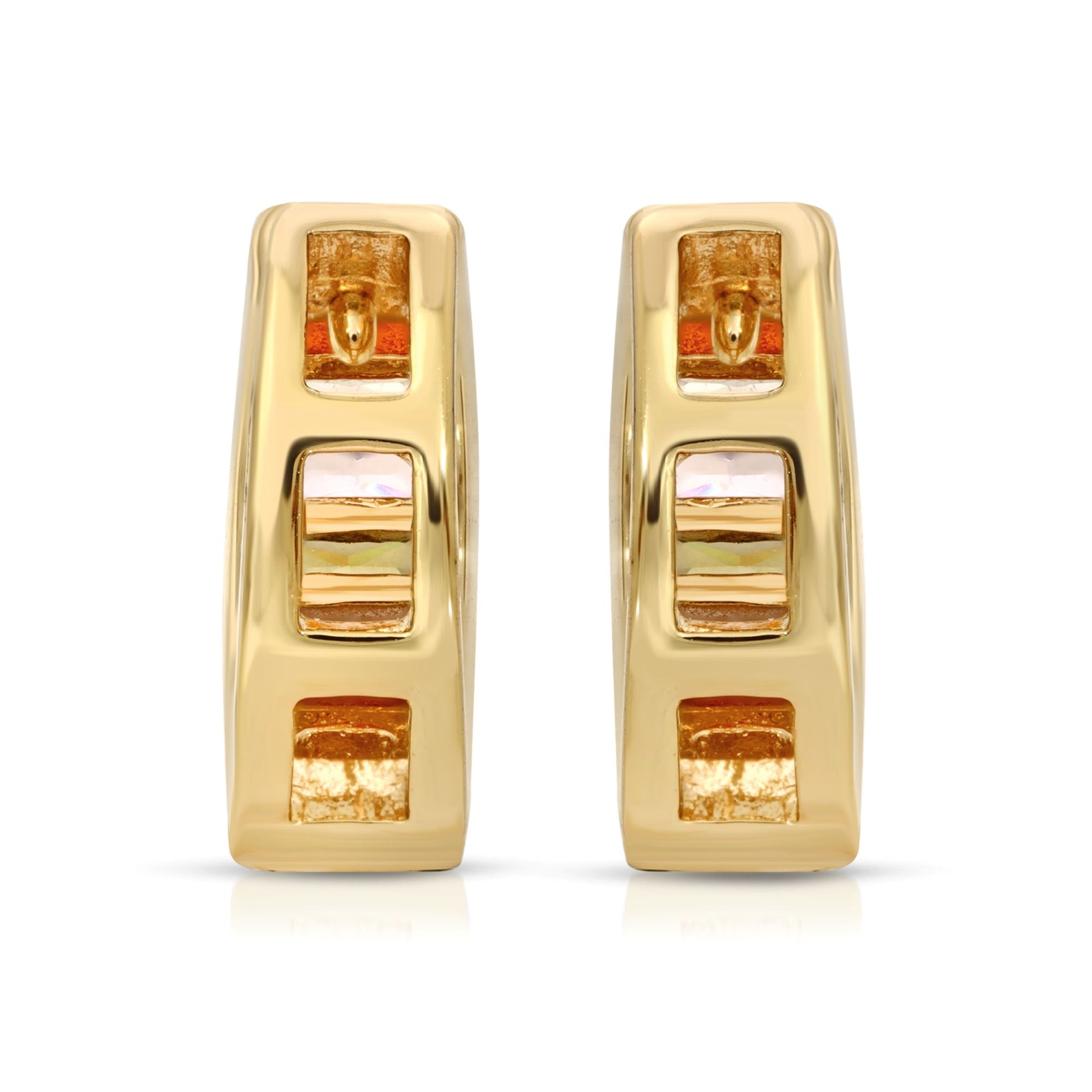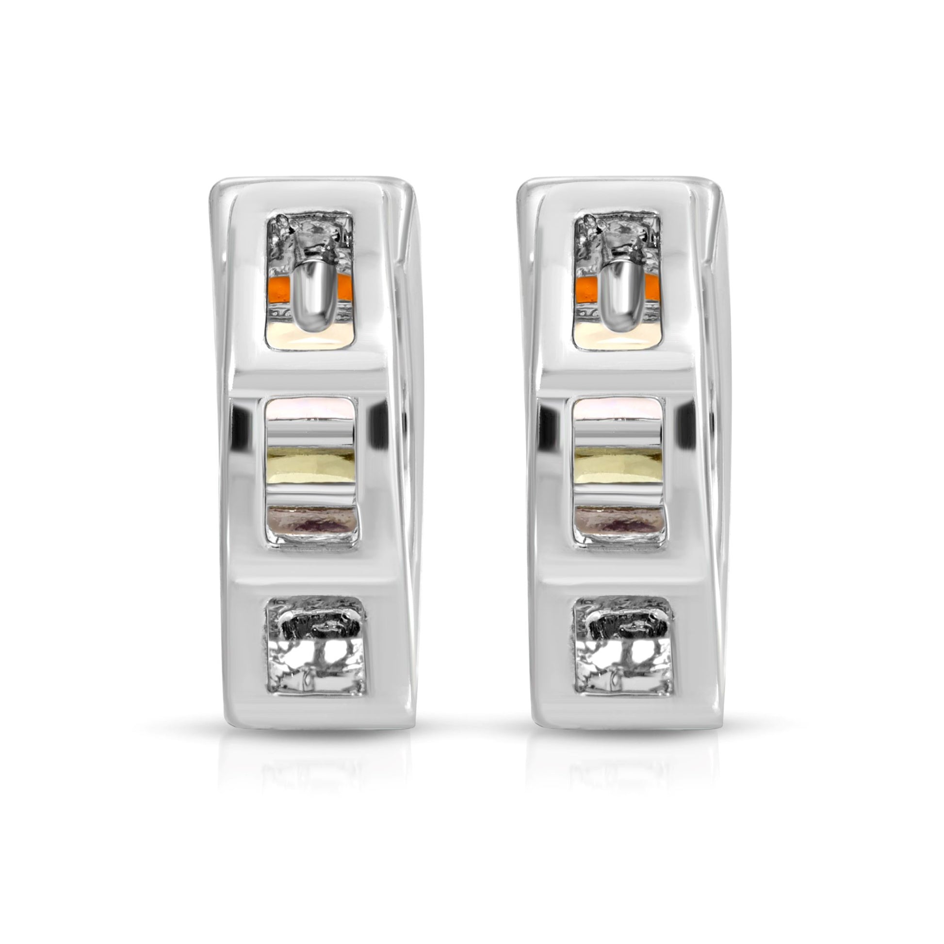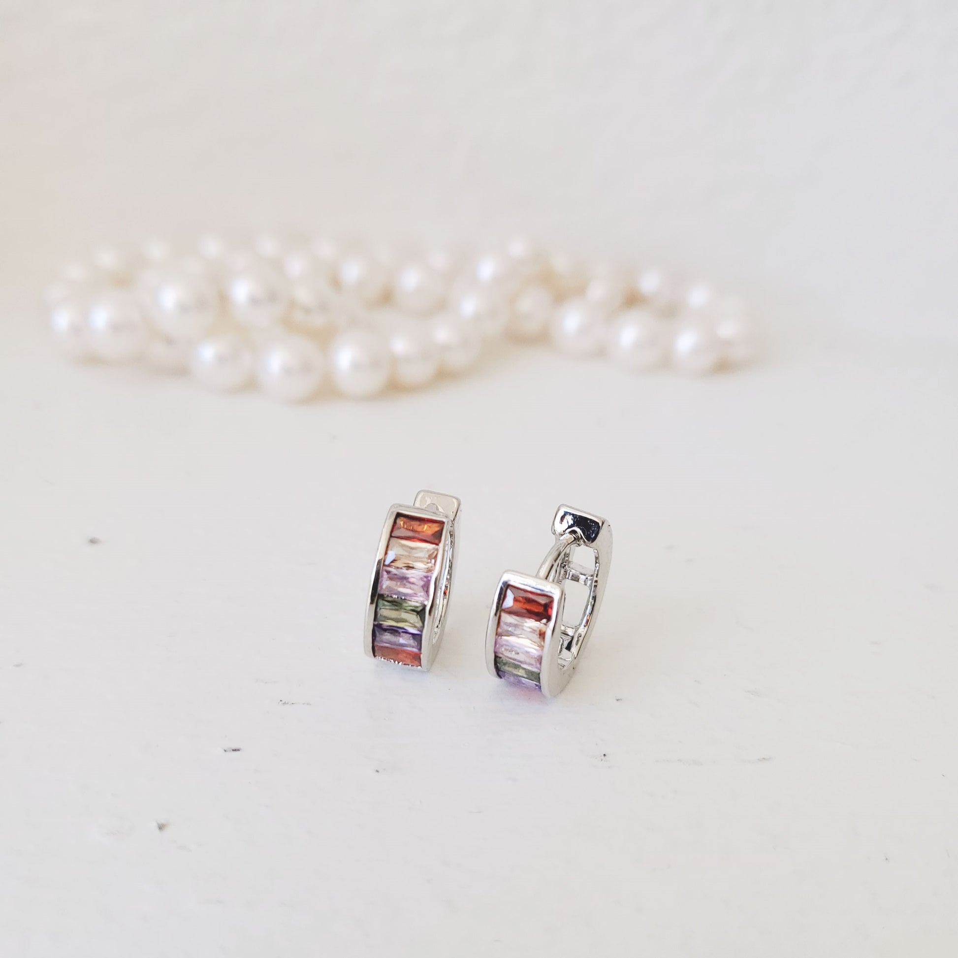 SS071526-Sterling Silver Post Cubic Zirconia Stone Brass Metal Hoop Earrings