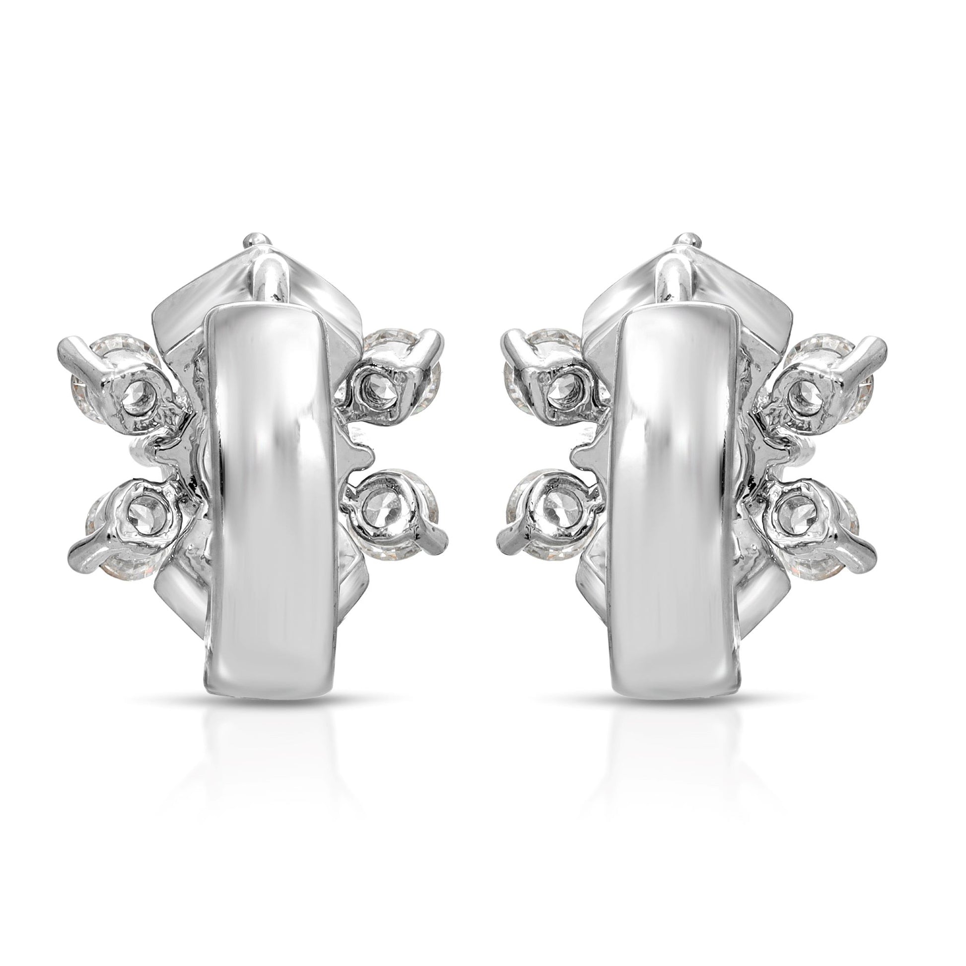 SS071528-Sterling Silver Post Cubic Zirconia Stone Brass Metal Hoop Earrings