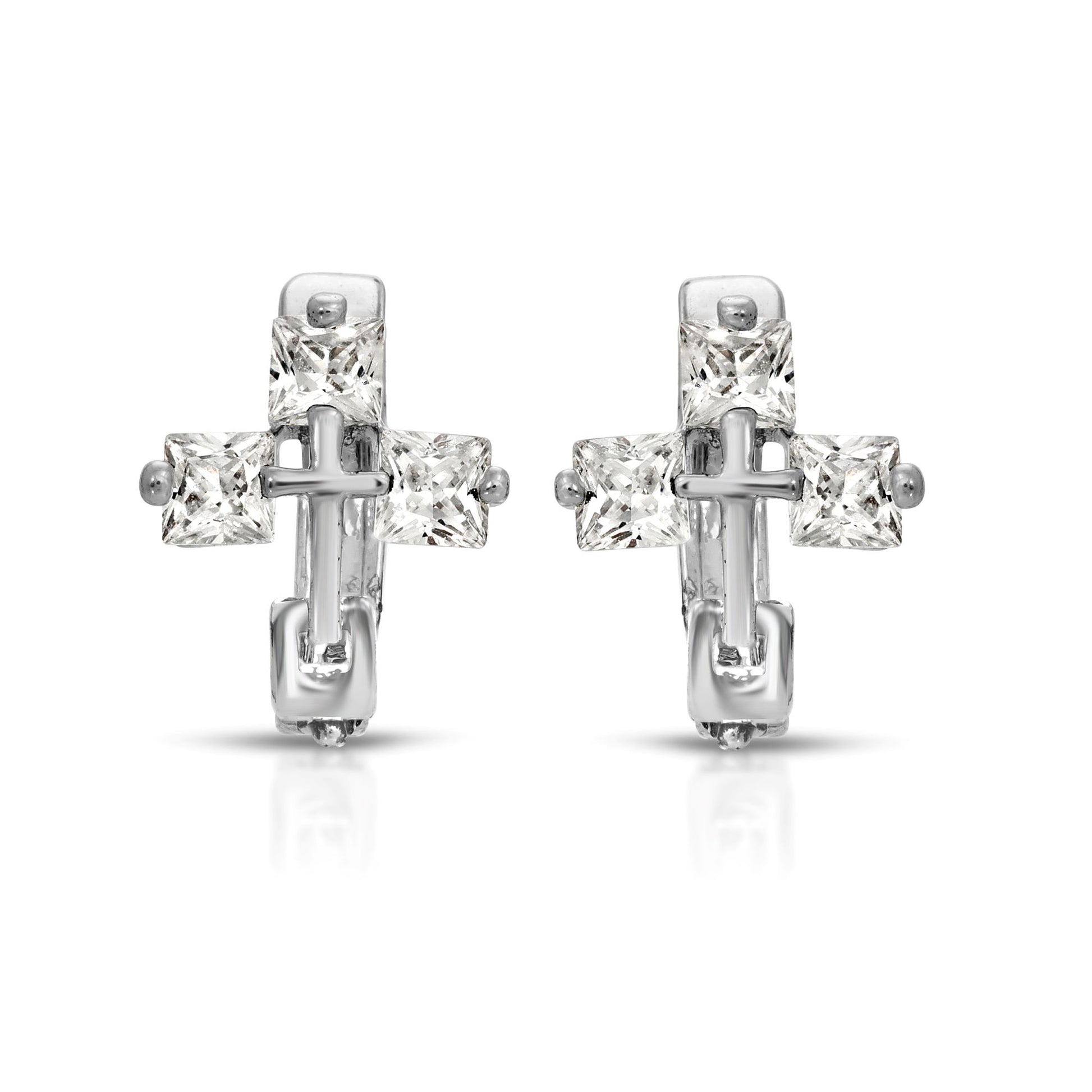 SS071531-Sterling Silver Post Cubic Zirconia Stone Brass Metal Hoop Earrings