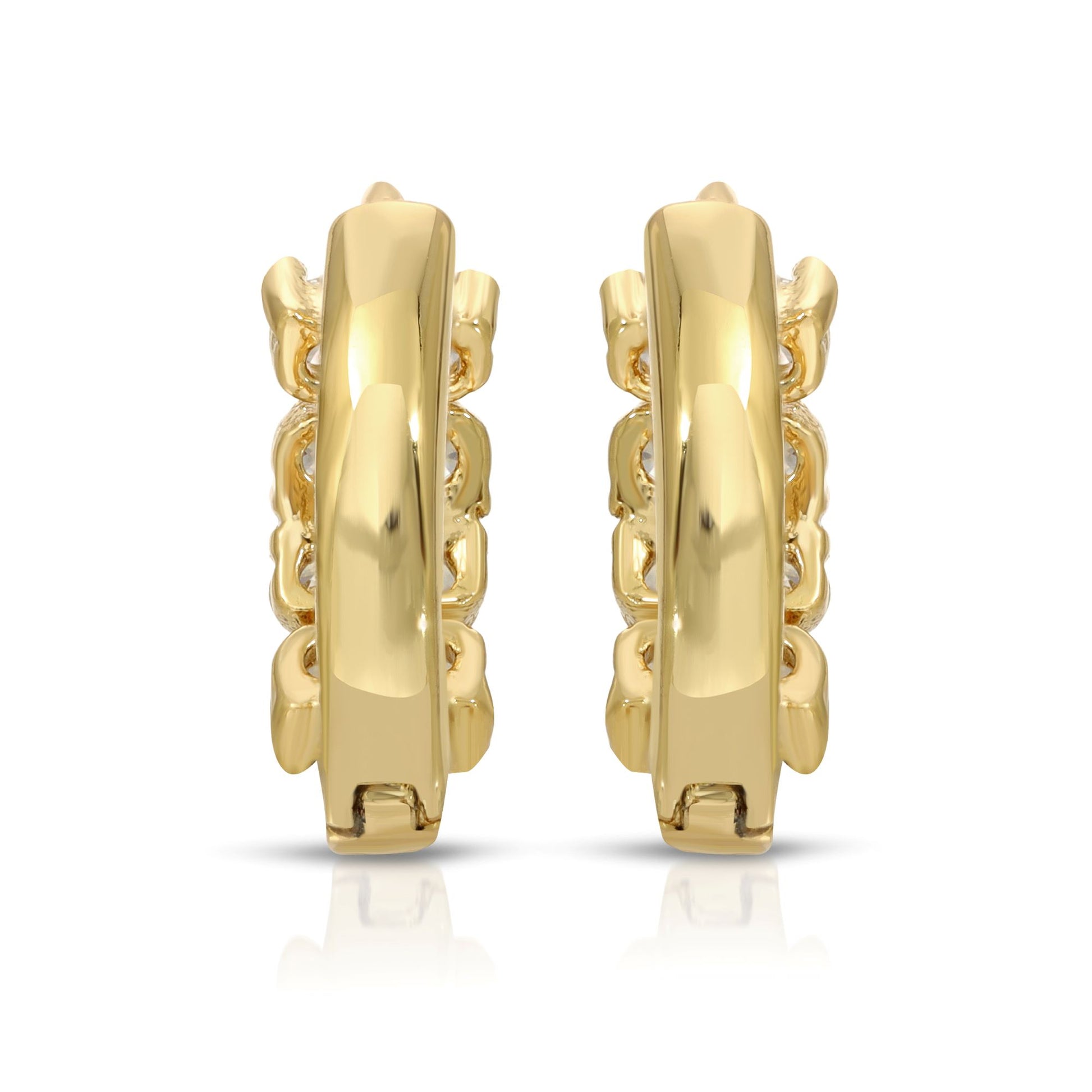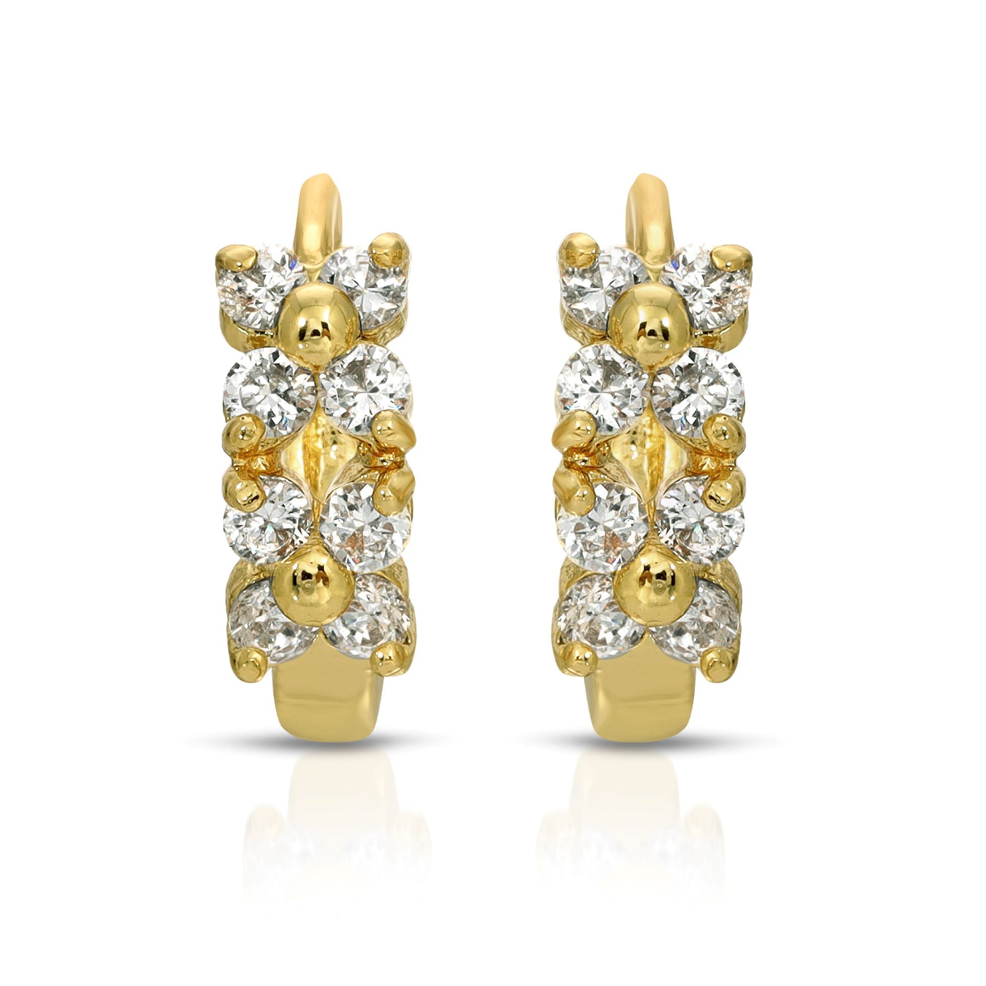 SS071544-Sterling Silver Post Cubic Zirconia Stone Brass Metal Hoop Earrings